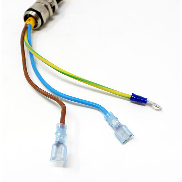 Comes partially stripped, leads attached, with strain relief.